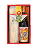 吟醸酒を練りこんだ自慢の吟醸うどんと、1年の始まりに、おめでたい七福神ラベルの限定酒のセットです。